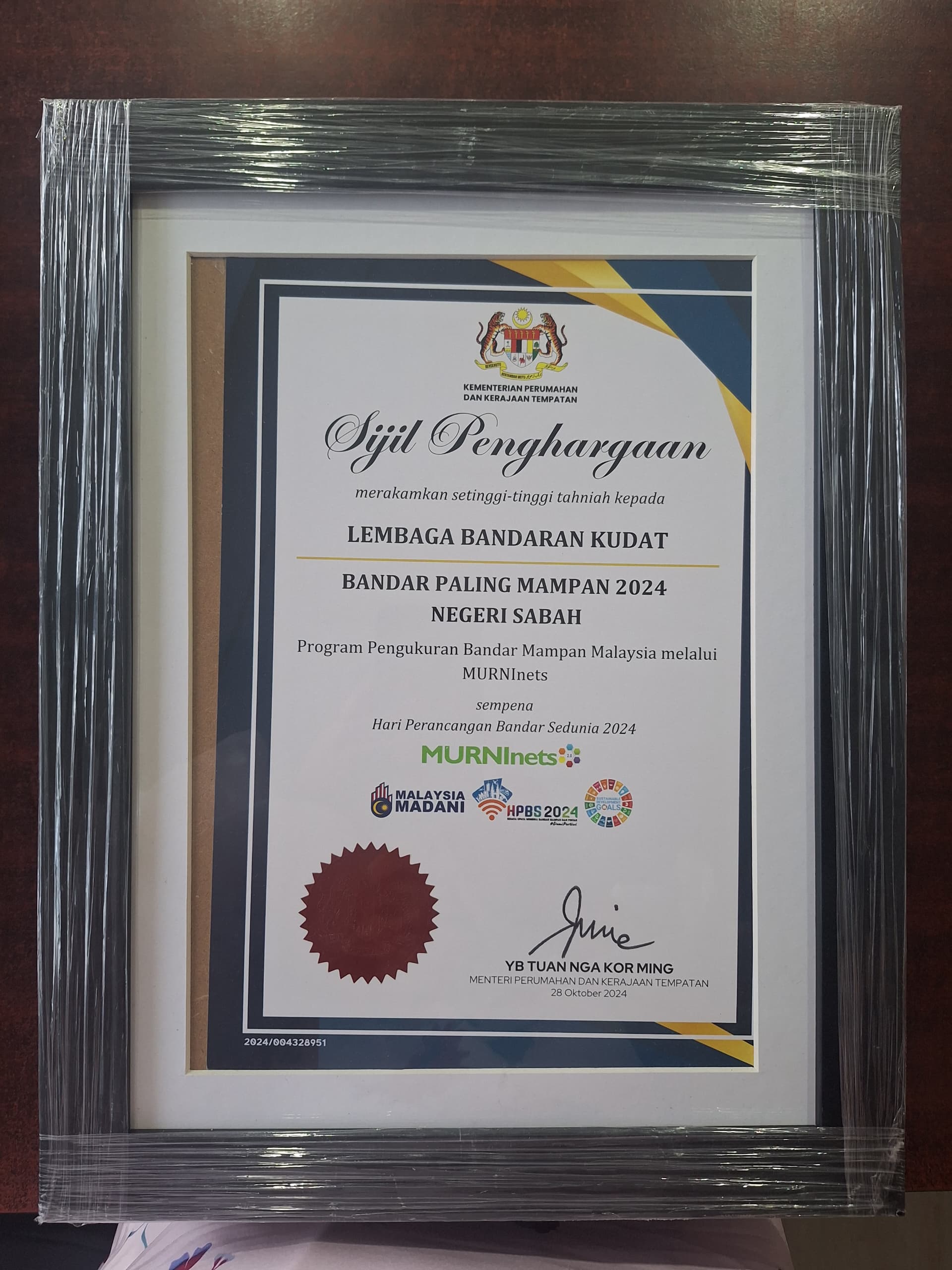 Sijil Penghargaan Bandar Paling Mampan 2024